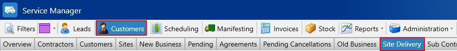 To schedule a one-off event, navigate to the Site Delivery tab in the Customers section.