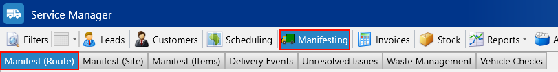 To add a site re-visit, navigate to the Manifest (Route) screen under the Manifesting section.