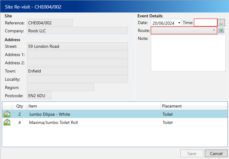 You will then be shown the Site Re-visit popup with the address and items for the job you selected displayed.