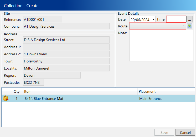 - Date – The date you intend for the item to be collected, which defaults to today.