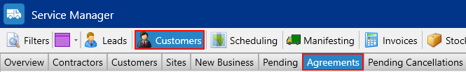 Next, use the filters on the left to search for the agreement with the items you want to cancel. Then, select the Items tab.
