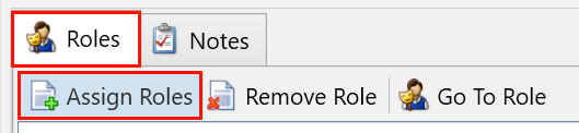 In the bottom grid, select the Roles tab. Then, click the Assign Roles button.