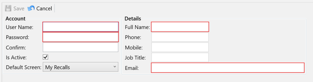 • Confirm – Confirm the password for the user, must match whatever has been entered in password.