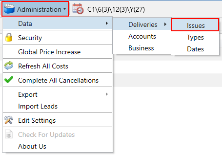 To access delivery issues, navigate to the Delivery Issues tab under the Issues section, located in the Administration menu on the main toolbar.