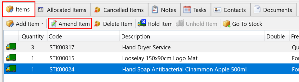 Next, use the search filters to find the agreement with the items you want to view history for. Then, on the Agreement Items tab, select the item you wish to review, and click Amend Item from the toolbar.