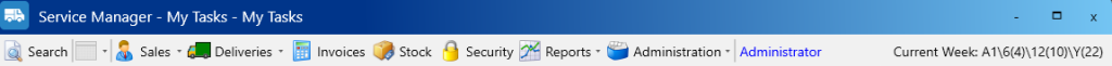 - General – We have had a revamp of the main toolbar. The sub menus for Sales and Deliveries have been removed and put directly on the toolbar; this will save you lots of clicks! The Current Week is now displayed in the middle of the screen and has a dedicated button for viewing the calendar, the my tasks Link has been moved to the right hand side of the screen.