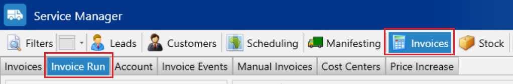 Navigate to the Invoice Run tab in the Invoices section.
