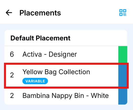 Variable quantity items are used when the exact amount delivered may change on each visit. These are clearly marked with a blue Variable flag on the item.