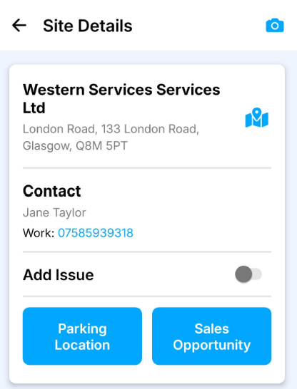 The Site Details screen shows useful information such as: