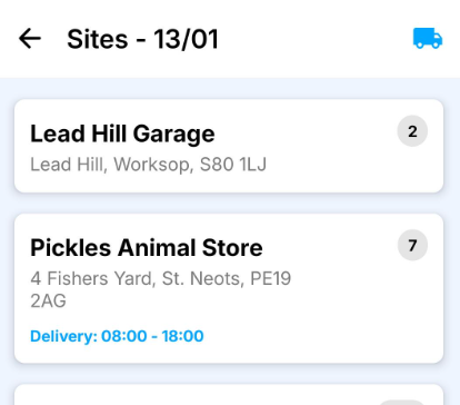 Tip: You can also view the van loading list for the route by pressing the blue van icon in the top right of the screen.