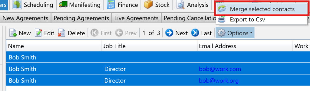 Merging contacts helps keep records clean and avoids confusion when emailing or reporting.
