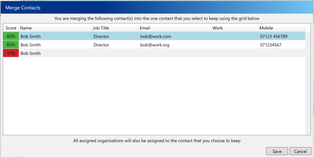 - Choose which contact details to keep (usually the one with the most accurate information)